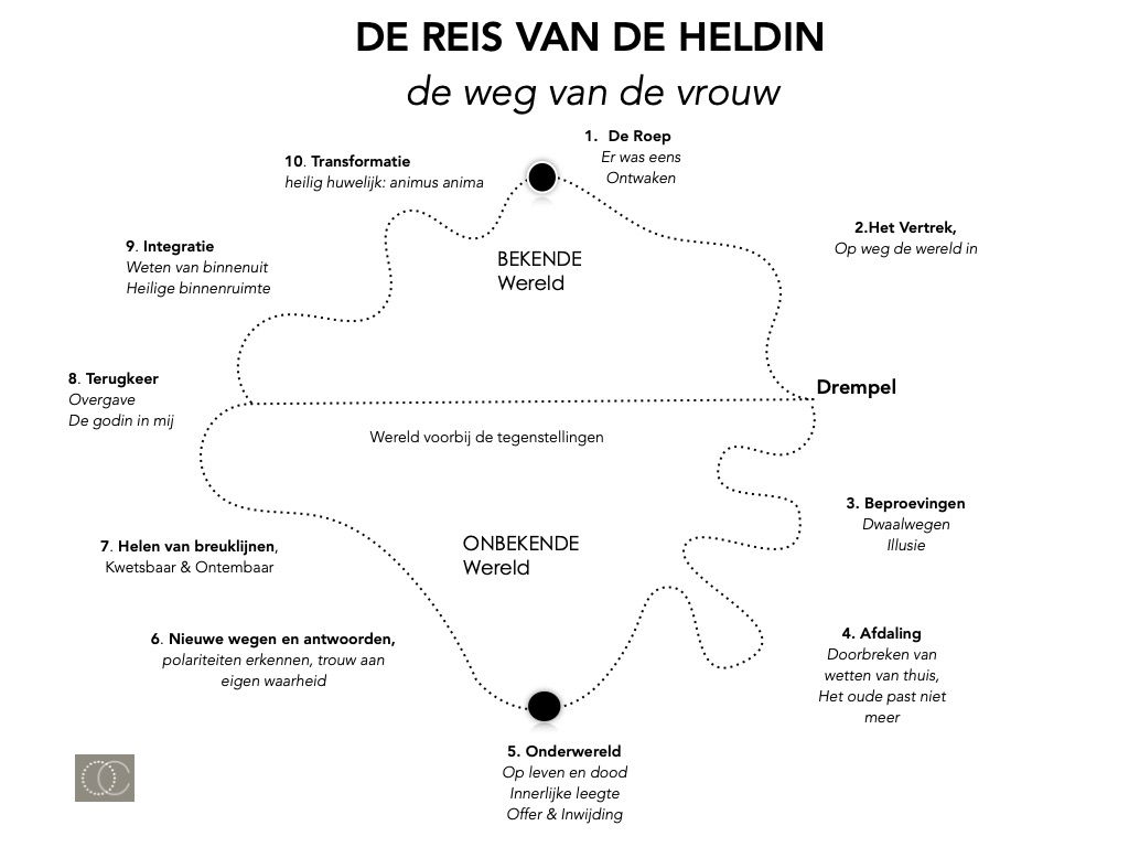 Het progamma volgt de stappen van het universele pad van persoonlijke ontwikkeling – de Reis van de Heldin. Gedurende de reis zul je steeds meer de rode draad ontdekken in de opening naar verandering in je leven. Je leert van binnenuit weer de weg naar buiten te gaan, vanuit je ware zelf, te leven.